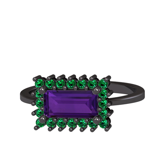 Ametist ve yeşil kuvars 925 ayar siyah rodyum kaplama gümüş yüzük
