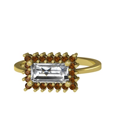Beyaz zirkon ve dumanlı kuvars 14 ayar altın yüzük