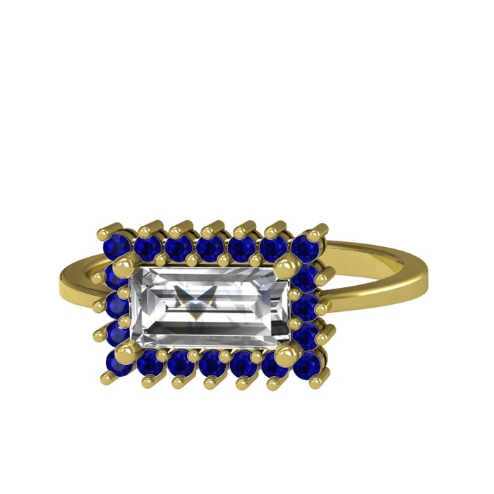 Beyaz zirkon ve lab safir 14 ayar altın yüzük