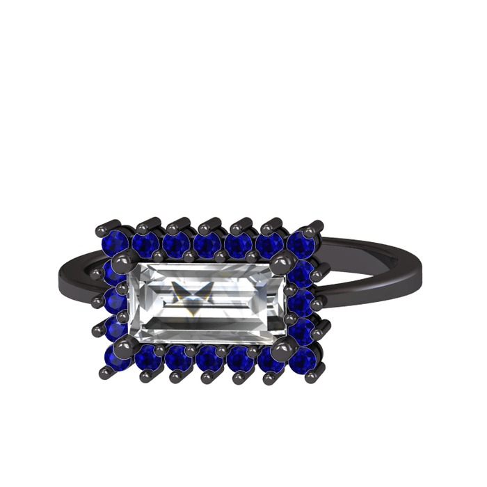 Beyaz zirkon ve lab safir 925 ayar siyah rodyum kaplama gümüş yüzük