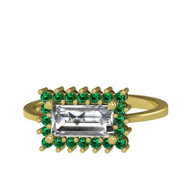 Beyaz zirkon ve yeşil kuvars 8 ayar altın yüzük