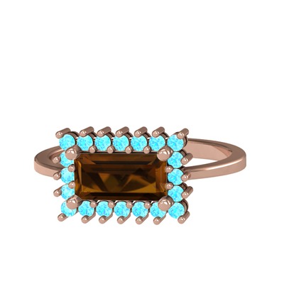 Dumanlı kuvars ve akuamarin 14 ayar rose altın yüzük