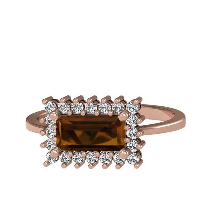 Dumanlı kuvars ve beyaz zirkon 14 ayar rose altın yüzük