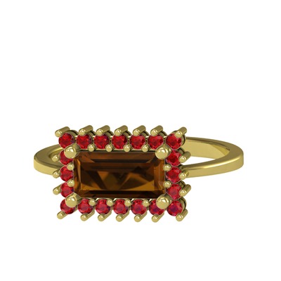 Dumanlı kuvars ve garnet 14 ayar altın yüzük