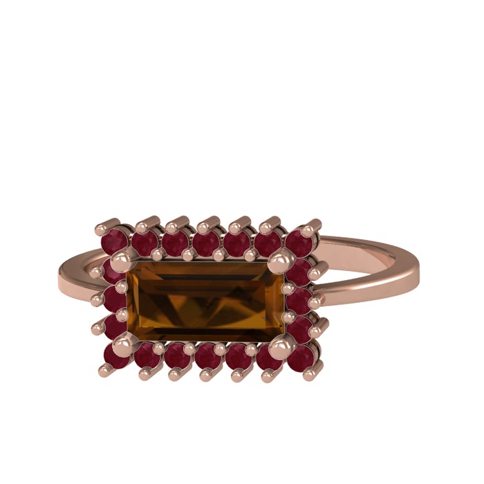 Dumanlı kuvars ve kök yakut 18 ayar rose altın yüzük