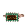 Dumanlı kuvars ve kök zümrüt 925 ayar rose altın kaplama gümüş yüzük