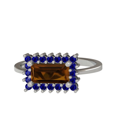Dumanlı kuvars ve lab safir 14 ayar beyaz altın yüzük