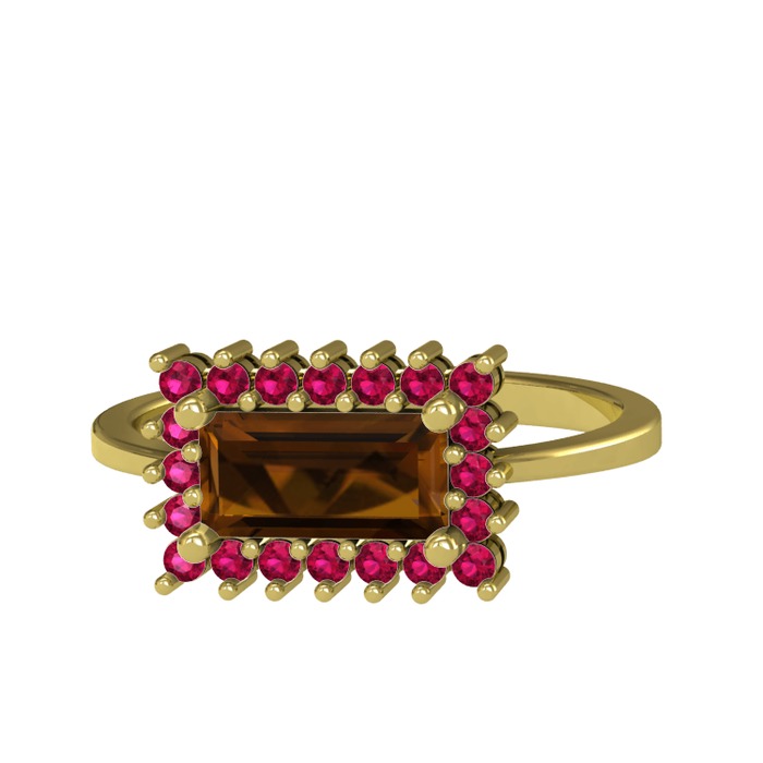 Dumanlı kuvars ve rodolit garnet 14 ayar altın yüzük