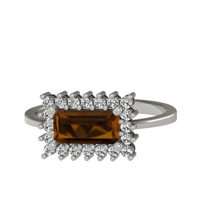 Dumanlı kuvars ve swarovski 18 ayar beyaz altın yüzük