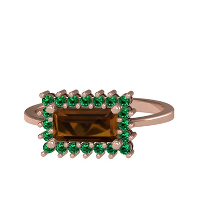 Dumanlı kuvars ve yeşil kuvars 14 ayar rose altın yüzük