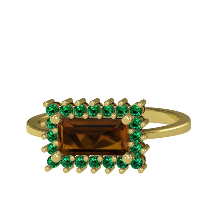 Dumanlı kuvars ve yeşil kuvars 18 ayar altın yüzük