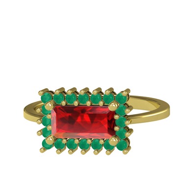 Garnet ve kök zümrüt 18 ayar altın yüzük