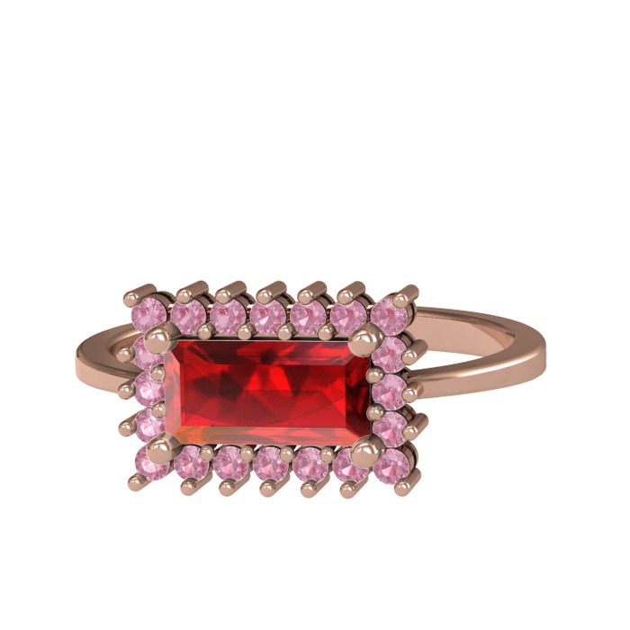 Garnet ve pembe kuvars 8 ayar rose altın yüzük