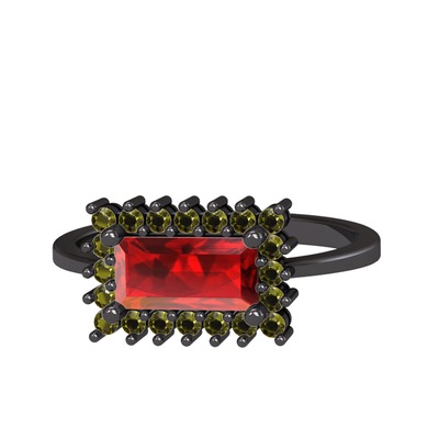 Garnet ve peridot 925 ayar siyah rodyum kaplama gümüş yüzük