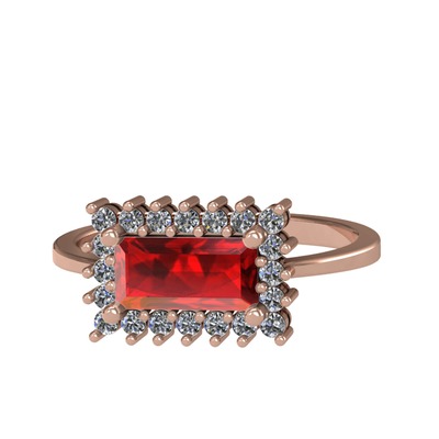 Garnet ve pırlanta 14 ayar rose altın yüzük (0.4 karat)