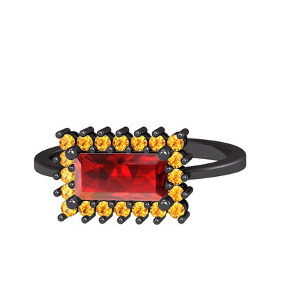 Garnet ve sitrin 925 ayar siyah rodyum kaplama gümüş yüzük