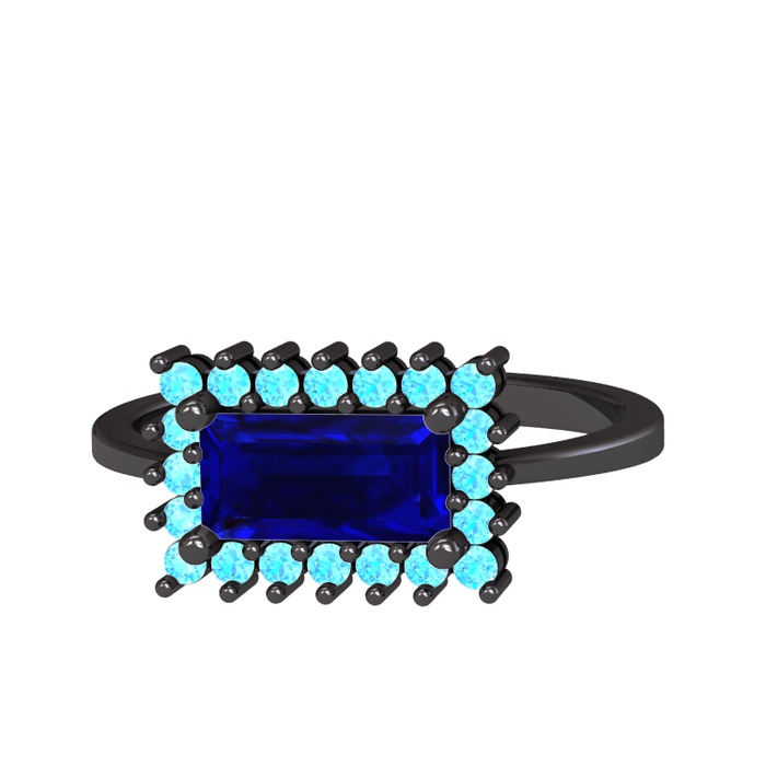 Lab safir ve akuamarin 925 ayar siyah rodyum kaplama gümüş yüzük