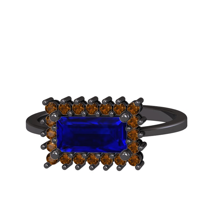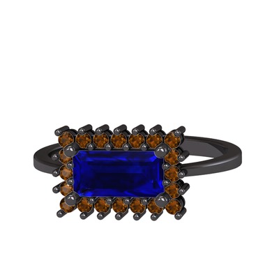 Lab safir ve dumanlı kuvars 925 ayar siyah rodyum kaplama gümüş yüzük