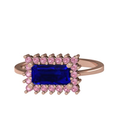 Lab safir ve pembe kuvars 8 ayar rose altın yüzük