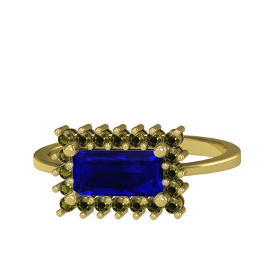 Lab safir ve peridot 925 ayar altın kaplama gümüş yüzük