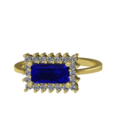 Lab safir ve pırlanta 14 ayar altın yüzük (0.4 karat)