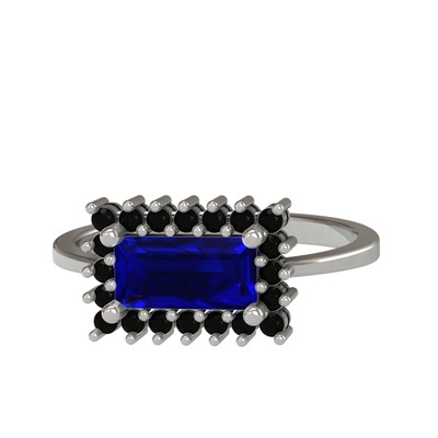 Lab safir ve siyah zirkon 14 ayar beyaz altın yüzük
