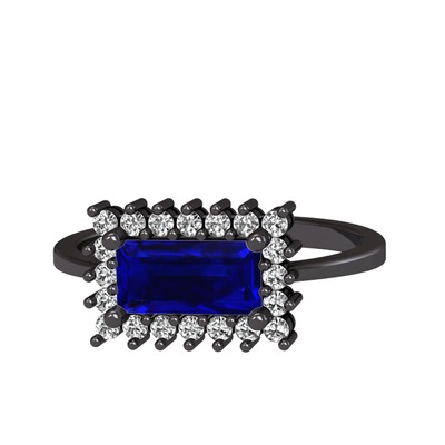 Lab safir ve swarovski 925 ayar siyah rodyum kaplama gümüş yüzük