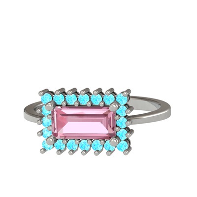 Pembe kuvars ve akuamarin 14 ayar beyaz altın yüzük