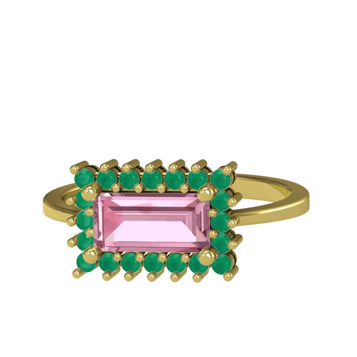 Pembe kuvars ve kök zümrüt 14 ayar altın yüzük