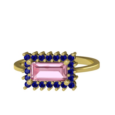 Pembe kuvars ve lab safir 18 ayar altın yüzük