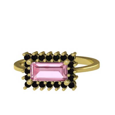 Pembe kuvars ve siyah zirkon 14 ayar altın yüzük