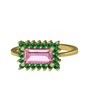 Pembe kuvars ve yeşil kuvars 925 ayar altın kaplama gümüş yüzük