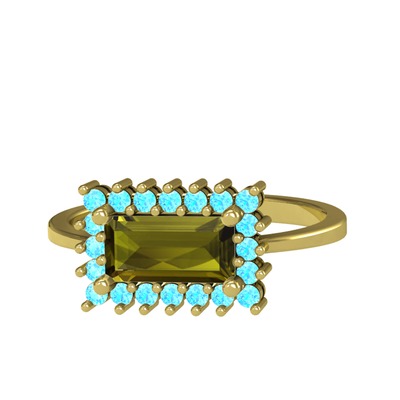 Peridot ve akuamarin 925 ayar altın kaplama gümüş yüzük