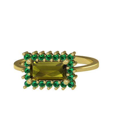 Peridot ve yeşil kuvars 8 ayar altın yüzük