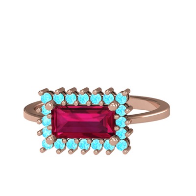 Rodolit garnet ve akuamarin 925 ayar rose altın kaplama gümüş yüzük