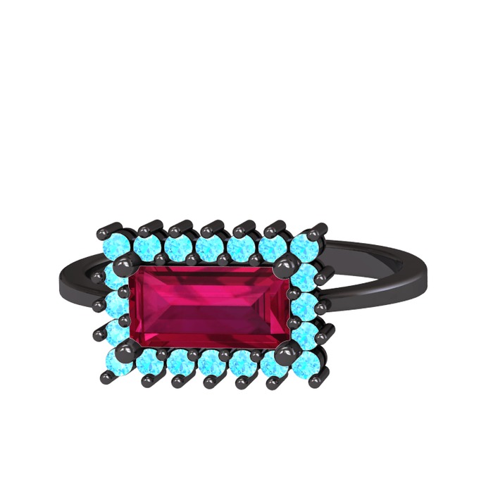 Rodolit garnet ve akuamarin 925 ayar siyah rodyum kaplama gümüş yüzük