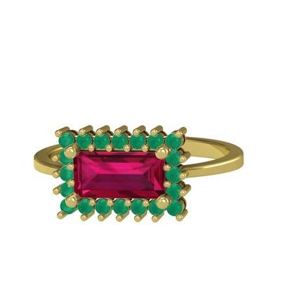 Rodolit garnet ve kök zümrüt 14 ayar altın yüzük