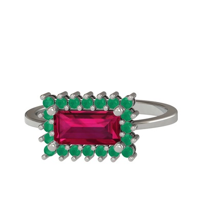 Rodolit garnet ve kök zümrüt 18 ayar beyaz altın yüzük