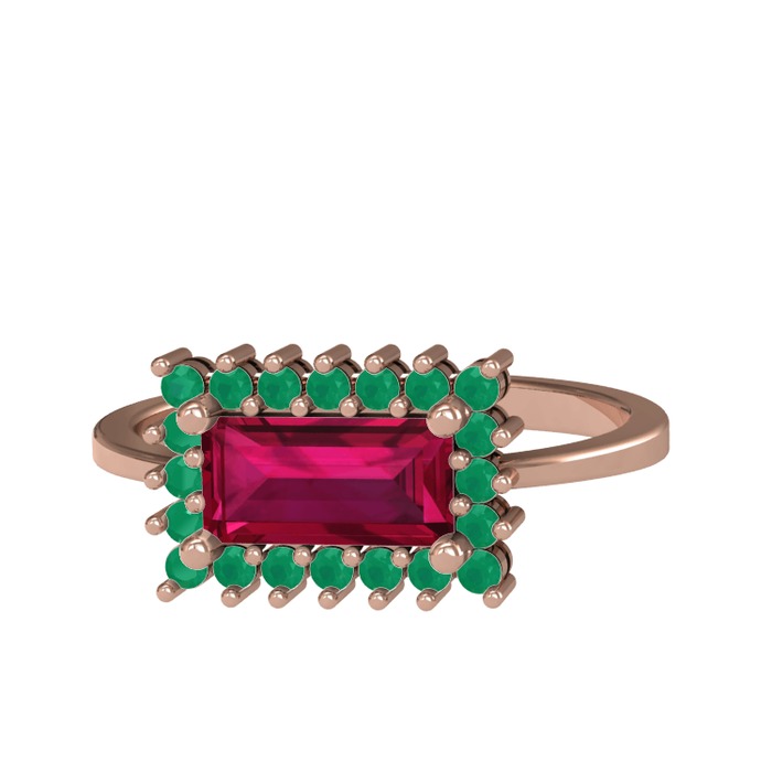 Rodolit garnet ve kök zümrüt 925 ayar rose altın kaplama gümüş yüzük