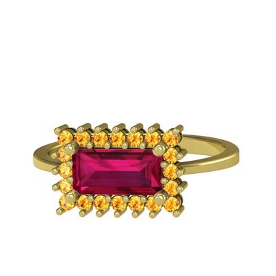 Rodolit garnet ve sitrin 18 ayar altın yüzük