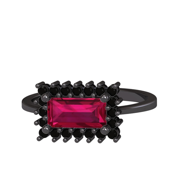 Rodolit garnet ve siyah zirkon 925 ayar siyah rodyum kaplama gümüş yüzük