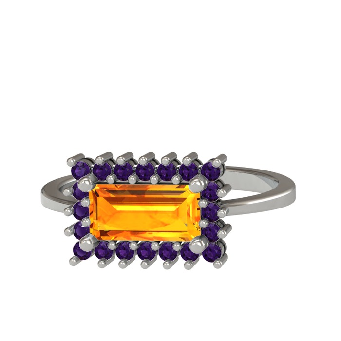 Sitrin ve ametist 8 ayar beyaz altın yüzük