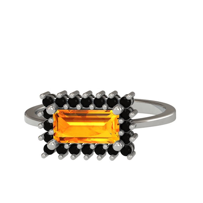 Sitrin ve siyah zirkon 14 ayar beyaz altın yüzük