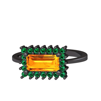 Sitrin ve yeşil kuvars 925 ayar siyah rodyum kaplama gümüş yüzük