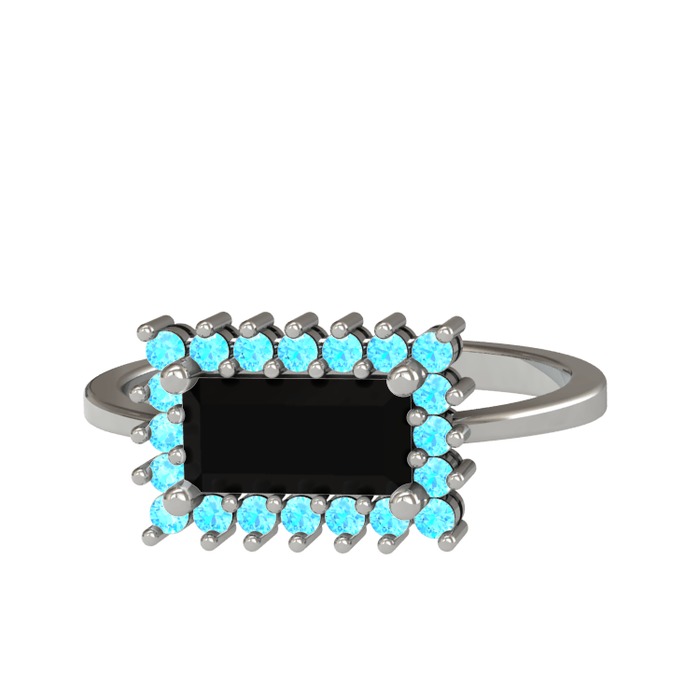Siyah zirkon ve akuamarin 18 ayar beyaz altın yüzük