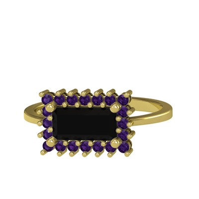 Siyah zirkon ve ametist 925 ayar altın kaplama gümüş yüzük