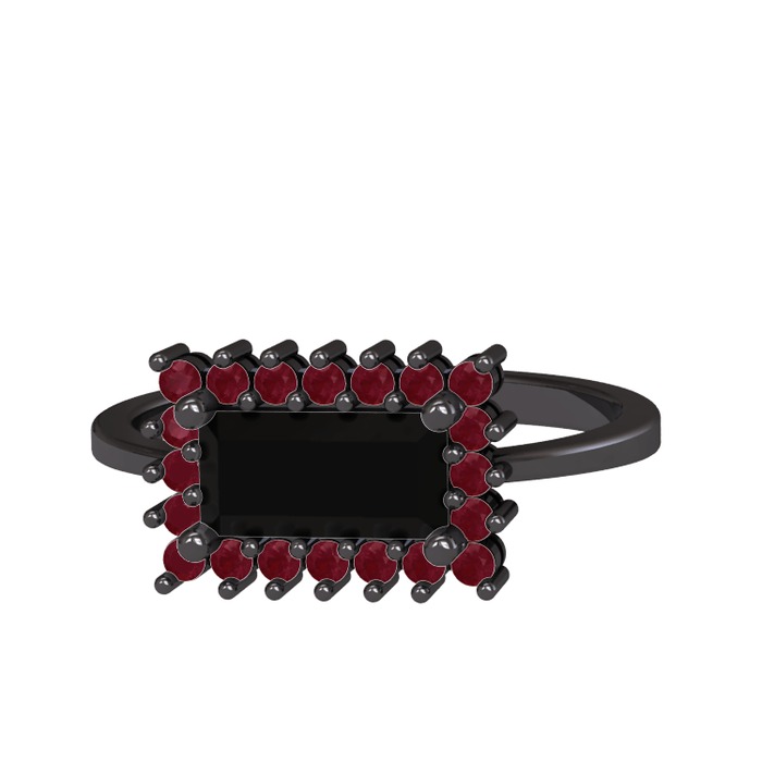 Siyah zirkon ve kök yakut 925 ayar siyah rodyum kaplama gümüş yüzük