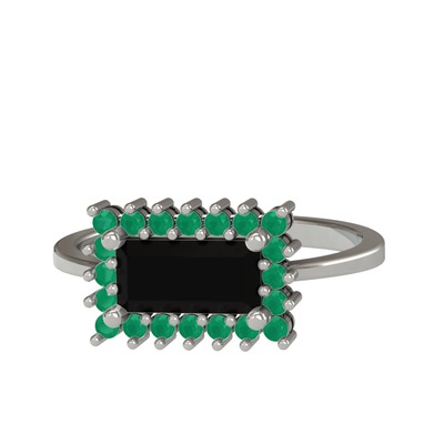 Siyah zirkon ve kök zümrüt 18 ayar beyaz altın yüzük
