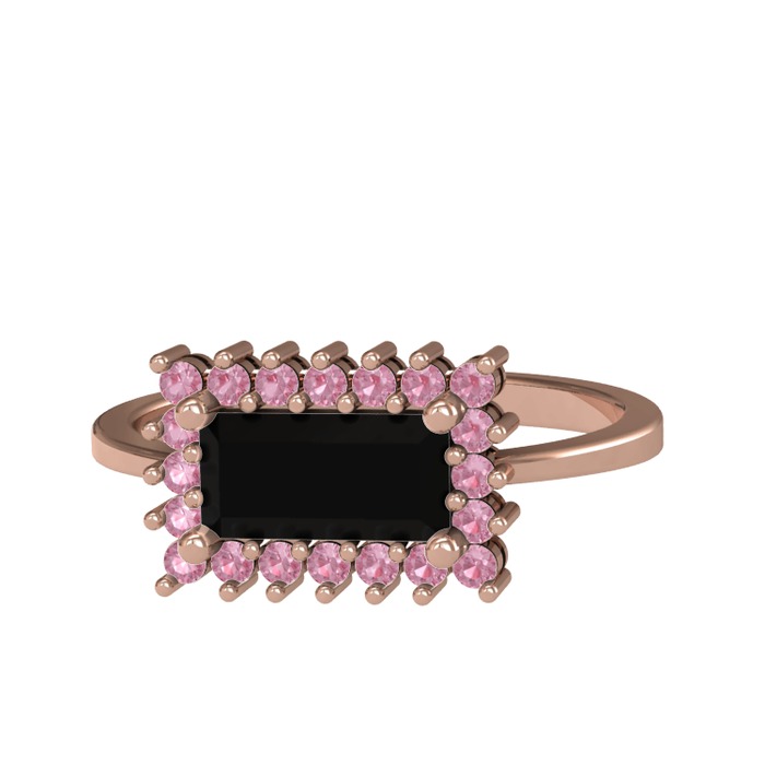 Siyah zirkon ve pembe kuvars 925 ayar rose altın kaplama gümüş yüzük