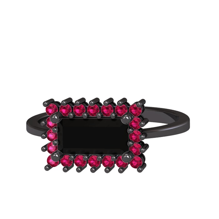 Siyah zirkon ve rodolit garnet 925 ayar siyah rodyum kaplama gümüş yüzük